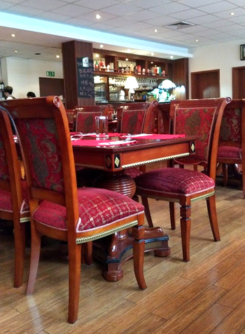 großen Gastraum, der leider mit den allerschwersten Protzmöbeln
