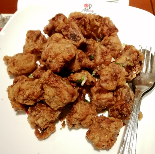gebratenes Schweinefleisch (12,80 €). Das war sehr knusprig, zart und