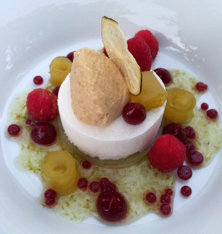 Das Dessert lag wie gemalt auf dem Teller, fürs Auge farblich hübsch