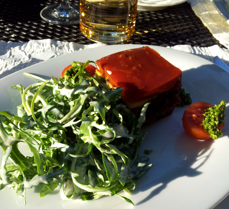 Als Vorspeise erhielten wir ein Gemüsetörtchen, umlegt mit Rucola und
