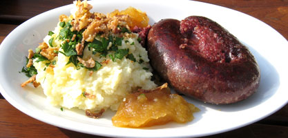 Rosinen. Und ja, Rosinen gehören unbedingt in eine Grützwurst! Es gibt