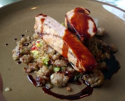 Der Hauptgang bestand aus Schwein auf Wirsing und Buchweizen, was sich