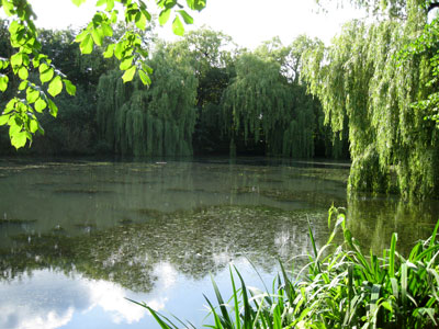 weidenumrankten Teich gelegene Gutshaus besucht, trifft auf eine bunte