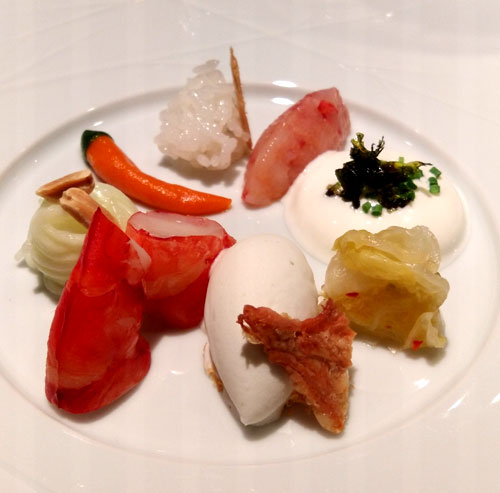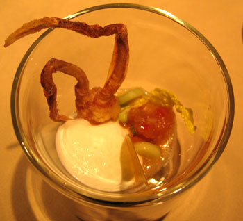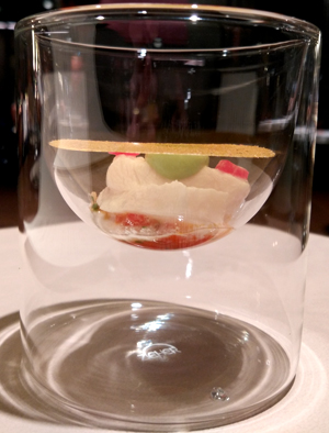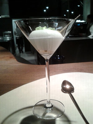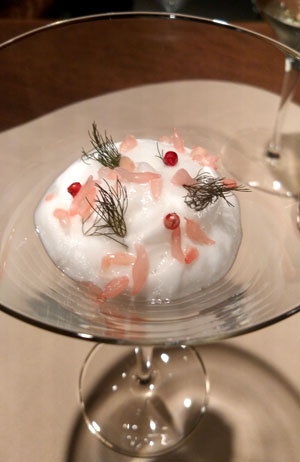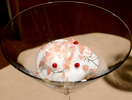 Noch ein Gruß, Hummertatar (gegart) mit feinporigem Martinischaum: