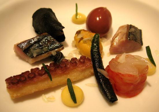 Pulpo mit Carabinero, Muscheln, Sobrasada & Makrele