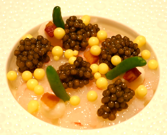 Chinesischer Kaviar, Hummer, Gänseleber und Gelbschwanzmakrelenfilets fehlten allerdings auch nicht und animierten schlicht zum Niederknien in Richtung Küche. Einen dermaßen prallen, wohlschmeckenden Carabinero (Rote Riesengarnele) haben wir niemals zuvor genossen; auch in diesem Hause nicht: