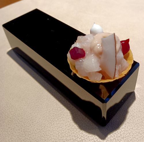 Hamachi, Himbeere und Kokosnuss