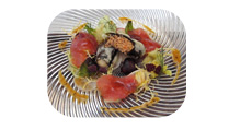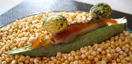 (wie zum Beispiel: Gänseleber-Aloe vera, Langustine-Marshmallow,