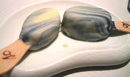 schmeckte, dazu Traubenhälftenformen aus Ingwergelee, eine weisse Mousse