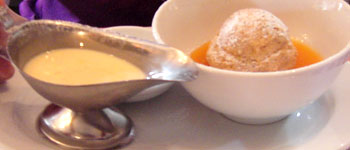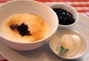 Kräftig nach Meerrettich duftend wurde 'Himmel und Erde' an den Tisch gebracht, die Blutwurst zeigte sich in Bestform, nämlich außen knusprig und innen butterzart. Kartoffelmus mit Röstzwiebeln war tadellos, Apfelmus angenehm stückig, jedoch eine Spur zu zuckrig - der Kurs von 9,90 ist angemessen: