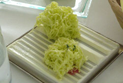 Portion reichlich. Auf kleinen Zettelchen ist vermerkt, um welche Sorte