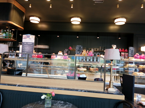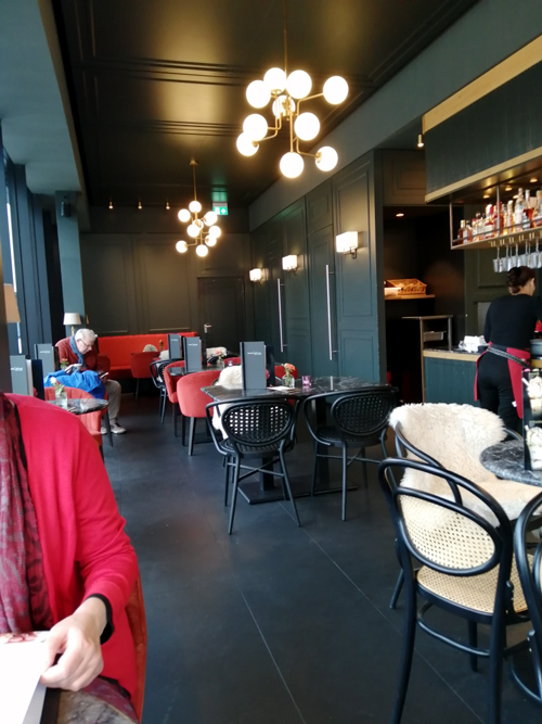 Kaffeemaschinen übertönte die Musik. Man sitzt direkt an der
