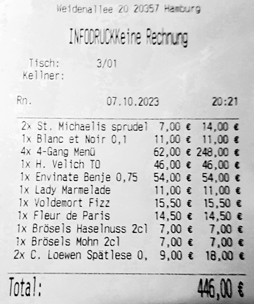 dann das ansonsten mit 4 € zu bezahlende Brot mit aufgeschäumter