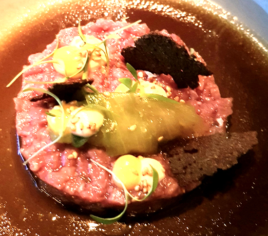 I Rindertatar vom Holsteiner Weideochsen mit Kimchigurken, Teriyaki,