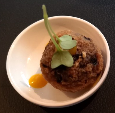 in seiner Säure hervortat. Es folgte Erde in Form einer Entenpraline,