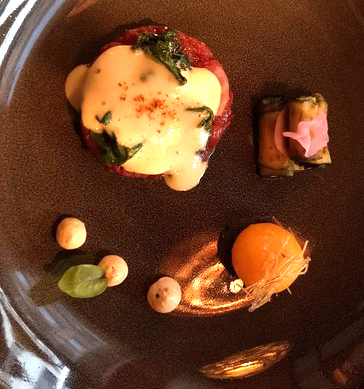 Rindertatar, Misosauce und Eigelb war, wie alle Gänge bis auf das