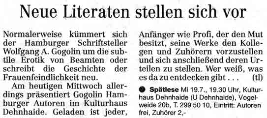 aus dem Hamburger Abendblatt vom 19.07.2006