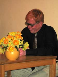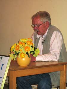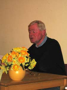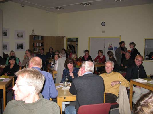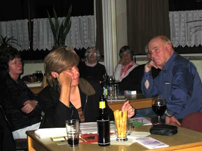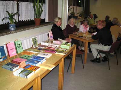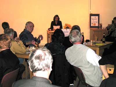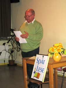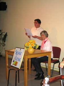 | Elfi Bock mit biographischen Zeilen zum Thema Makula-Degeneration. | Karsten Meyer mit seinem Männer-Gedicht |