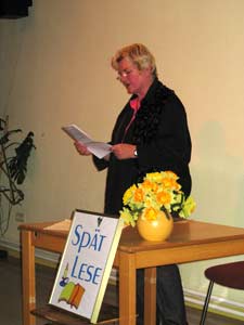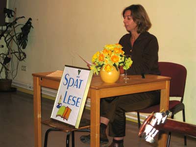 | Beate Donsbach mit einem Nekrolog für