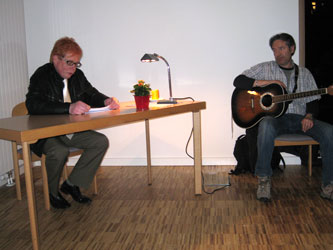 | Gertrud Everding ('Else') + Matthias Fehlberg (Gitarre) | Lukas Stoermer stellte seinen dokumentarischen Roman 'Der Schnitt' vor. |