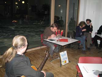 | Geboten wurde wie immer Literatur vom Feinsten: Rüdiger Ries - über das Gewissen Helmut Gerber - Situationsdarstellung. Eine Geschichte über Alzheimererkrankung Beate Donsbach - Selbstversuch Leo Knorr - bloß kein Stress Detlef König - Lyrik Peter Jörgensen - kleiner Bruch