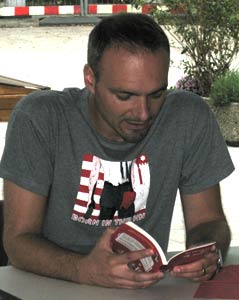 | Helmut Gerber mit dem ersten Teil von 'Auf Gottes Karussel' | Rüdiger Ries las 'Höllenjahre'
