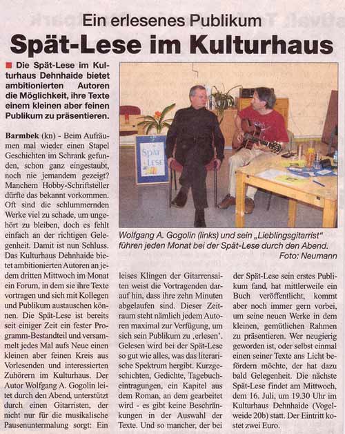 Die Spät-Lese im Februar 2020 war die letzte mit Wolfgang A. Gogolin.